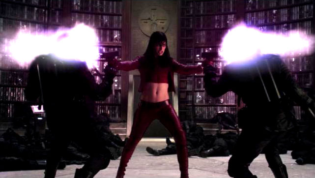 "It's Milla time!" Yes, I confess, I watched this to see Milla "Violet" do her thing in this flick. I loved her, loved her, loved her in The Fifth Element and her Resident Evil work was okay too. Ultraviolet has a barely acceptable plot, somewhat engaging screen adaptation, very impressive CGI overall, top-notch cinematography taste & vision. Milla looks spectacular and action scenes were well-done. I enjoyed 90% of this bombastic sci-fi, heroine extravaganza. Nanotech'd weaponry and bullets "from outta nowhere" was a new twist for me but how they could be fashioned so incredibly fast is beyond the hard-science I understand -- unless the weapons and ammo pre-existed in some quasi-energy-matter state, superpacked in storage for rapid retrieval. The 10% of the movie that failed me was the CGI'd motorcycle chase looked a but comic-booky in spots and NOT realistic. Never mind what Violet pulled off was essentially impossible, it just looked a bit unfinished in the CGI arena, textures not added in spots, breaking glass looking too drawn versus really breaking, small stuff really but it is just that sort of special effects that makes special effects NOT special. If you can tell is is CGI-done then it is subpar work. You shouldn't see most special effects other than slo-mo, ramping and the stuff we all were wow'd by in The Matrix. One last beef -- how in the world does Violet dodge 25 or thirty gun experts shooting at her at close range from 360 degrees surrounding her? Sure. maybe the first couple guys are stupid enuff to die in crossfire but ALL of them doing that? Please So, overall decent flick.